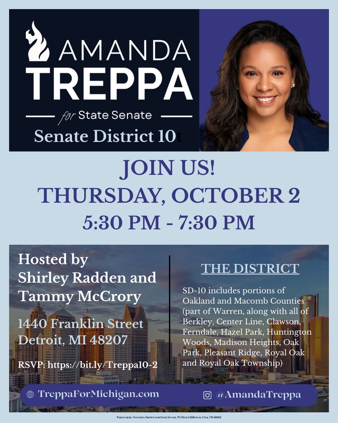Not sure if you’re in the district? Click here to view the official Michigan Independent Citizens Redistricting Commission site where you can plug in your address to find out.